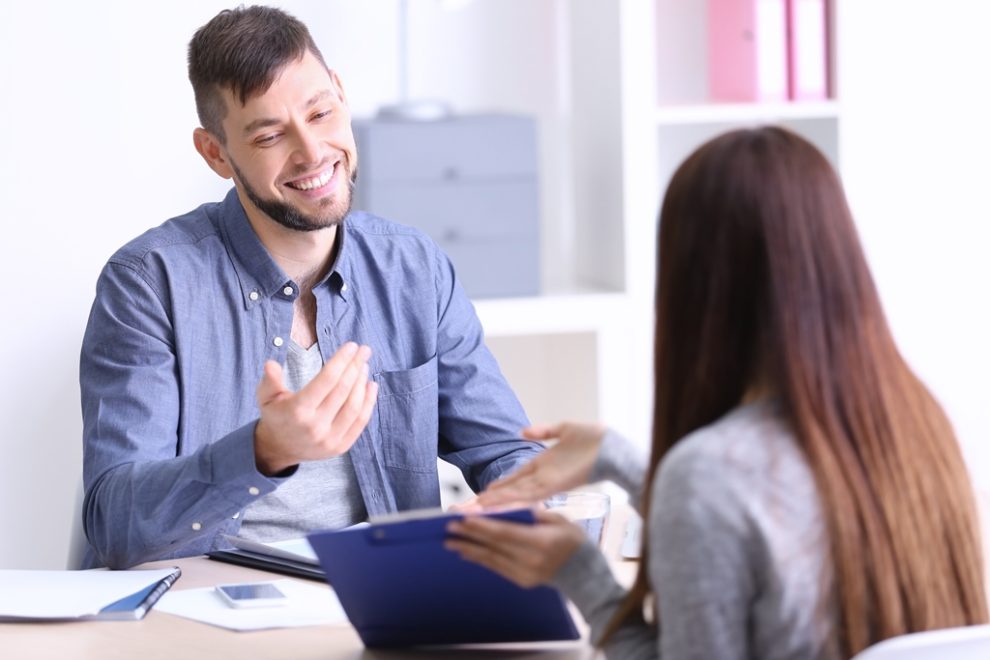 Een sollicitatiegesprek is een gesprek in het kader van een sollicitatie, tussen een sollicitant en een of meer vertegenwoordigers van het bedrijf dat een vacature heeft. Bij sollicitatiegesprekken is bij grotere bedrijven vaak iemand van Human Resources aanwezig.
